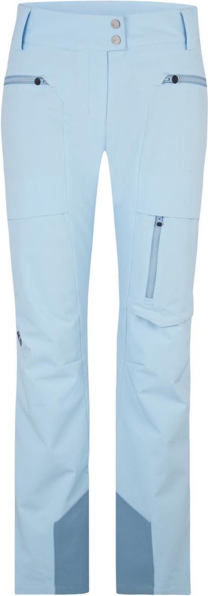 De zeer functionele, gewatteerde ZIENER freeride damesbroek TIPPA LADY is de perfecte metgezel voor lange dagen op de piste. De trendy regular fit broek kenmerkt zich door maximaal comfort. Het ademende, winddichte en waterdichte ZIENER AQUASHIELD®-membraan (waterkolom 10.000 mm/ademend vermogen 10.000 g/m²/24u) zorgt voor een warm en droog klimaat. Bovendien houdt een hoogwaardige isolatiemix (vulling van 80 g/m²) je aangenaam warm. Dankzij de milieuvriendelijke waterdichtheid is de broek PFC-vrij. Comfort en maximale bewegingsvrijheid worden gegarandeerd door de zeer elastische binnenband en de elastische binnenvoering. Dankzij de waterdichte ritssluiting in de zijzak op het linkerbeen en de twee steekzakken kun je je belangrijkste spullen veilig opbergen. De broek is bovendien voorzien van versterkte randbescherming en een sneeuwvanger. De belangrijkste naden zijn getapet. Het product bevat gerecycled materiaal – voor hulpbronnenbesparend gebruik.